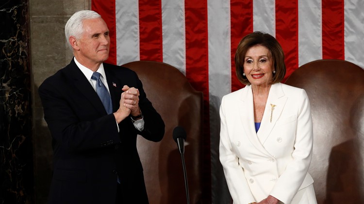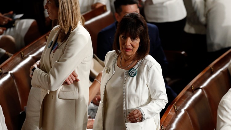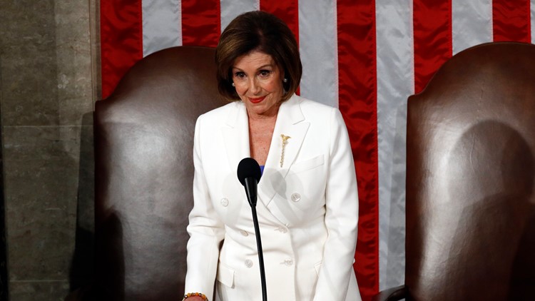 Rather than an all-black outfit, Pelosi can be seen in an white suit at the State of the Union. She joins other female Democratic congresswomen who are wearing white to honor the women's suffrage movement. The Democratic Women's caucus said in a tweet that the congresswomen would wear white to show their persistence as they fight for the people, stand against President Trump's "dangerous" policies and "make sure the voices of women and families are heard."